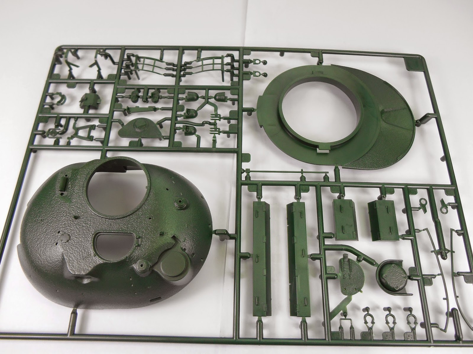 Parts A & C deal with the lower and upper hull parts and in the main these are cast very well however Revell have chosen to cast the drivers periscopes as solid parts with no clear alternatives so it's a case of scratch building new ones or enhancing the existing ones. Also the hull has a molded on cast texture which I'm not so sure about. Personally I think it's far too pronounced and will be looking to reduce this effect.