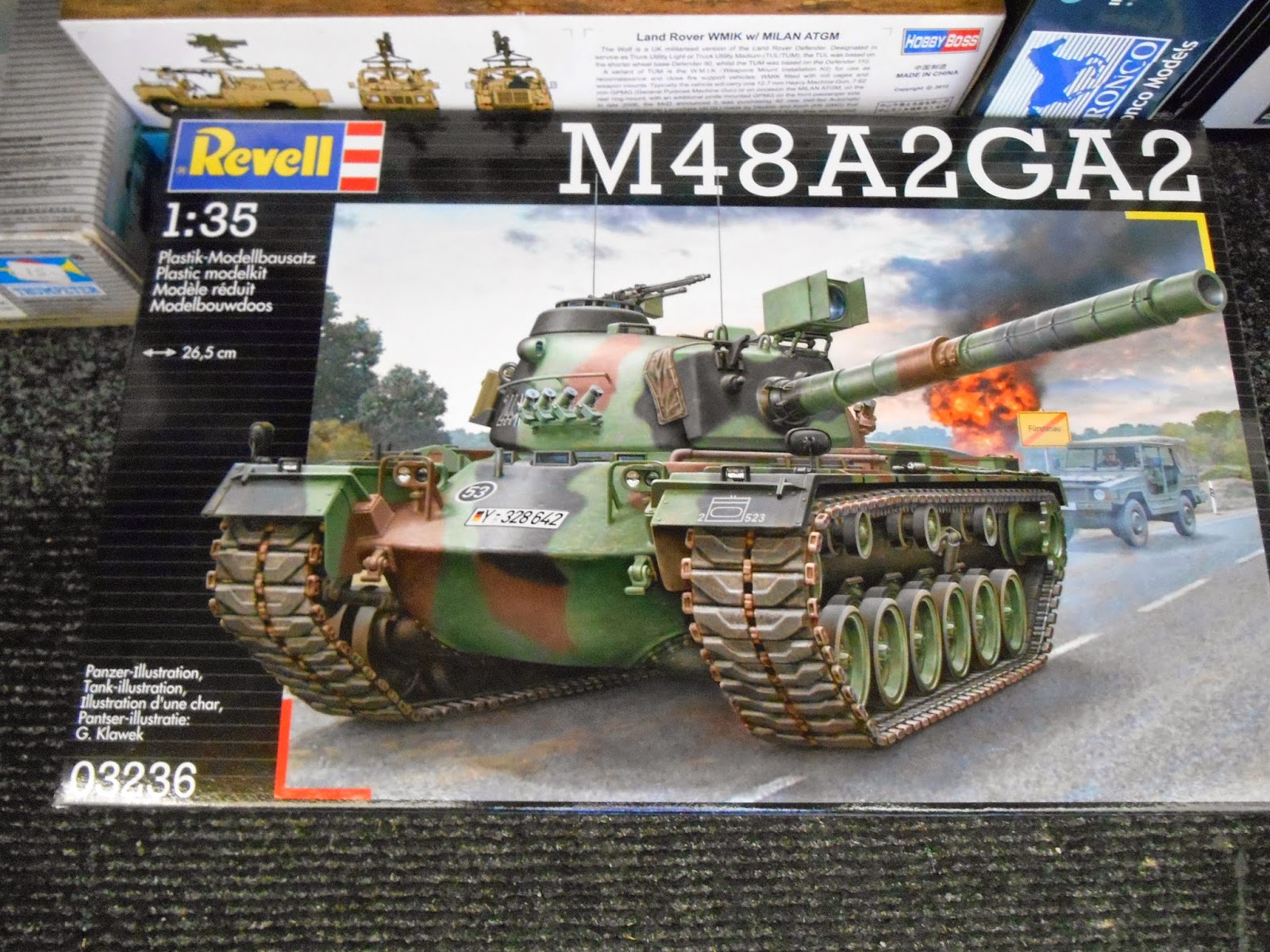 Revell's latest release and one I've been waiting for since it was announced is the M48 A2 GA2. I have always wanted to model this particular version and now finally have the chance. The kit is supposed to be an all new molding however I do have my reservations about that. As usual it's cast in Revell's signature hideous green plastic which I really don't like. And again as usual it's in a side opening box.